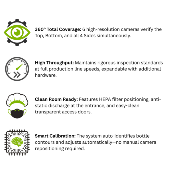 Ensure 100% quality control for white plastic bottles with a system designed for precision, speed, and clean-room compliance.